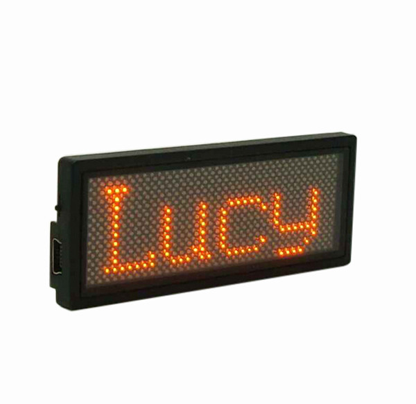 Moving Rechargeable LED Name Tag Orange color B1236TO Images |